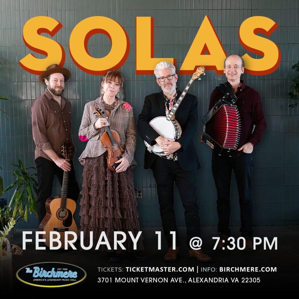 On February 11 at The Birchmere, founding Solas members Seamus Egan, Winifred Horan, and John Williams will be joined on stage by renowned Irish singer/flutist, Nuala Kennedy, and Alan Murray! Fans can look forward to an unforgettable musical journey as the band showcases their signature sound while continuing to innovate and inspire.